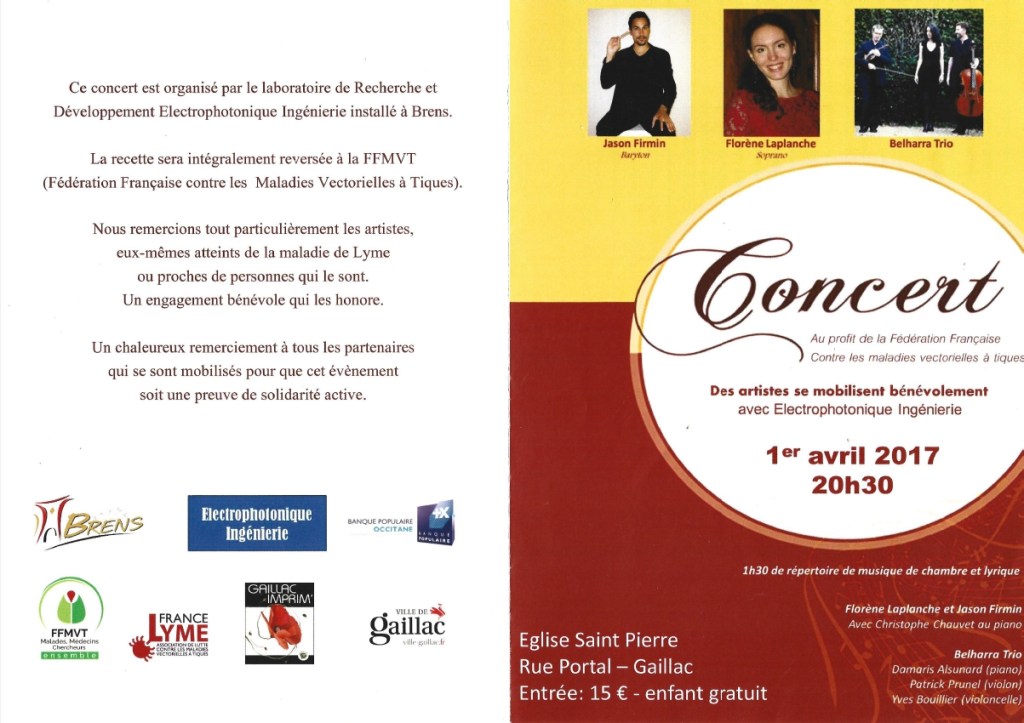 1er avril 2017 – Concert au profit de la Fédération Française contre les Maladies Vectorielles à Tiques (FFMVT).